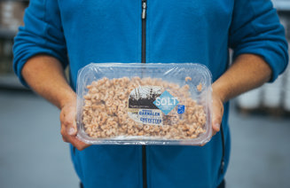 Gevangen in de Noordzee en in Nederland gepeld en verpakt