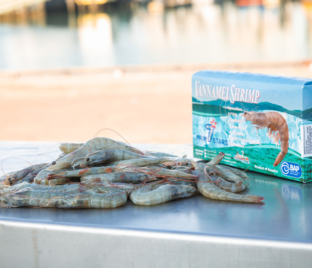 Daarnaast leveren wij ook wilde en gekweekte Black Tiger-garnalen, die onder het merk Prim7Stars van Primstar, een joint venture binnen onze familie van bedrijven, worden aangeboden. Deze garnalen worden op zee gesorteerd en ingevroren en zijn verpakt in blokken van 2 kg. Dankzij de zorgvuldige kwaliteitscontrole kunnen wij een product van utstekende kwaliteit garanderen.
